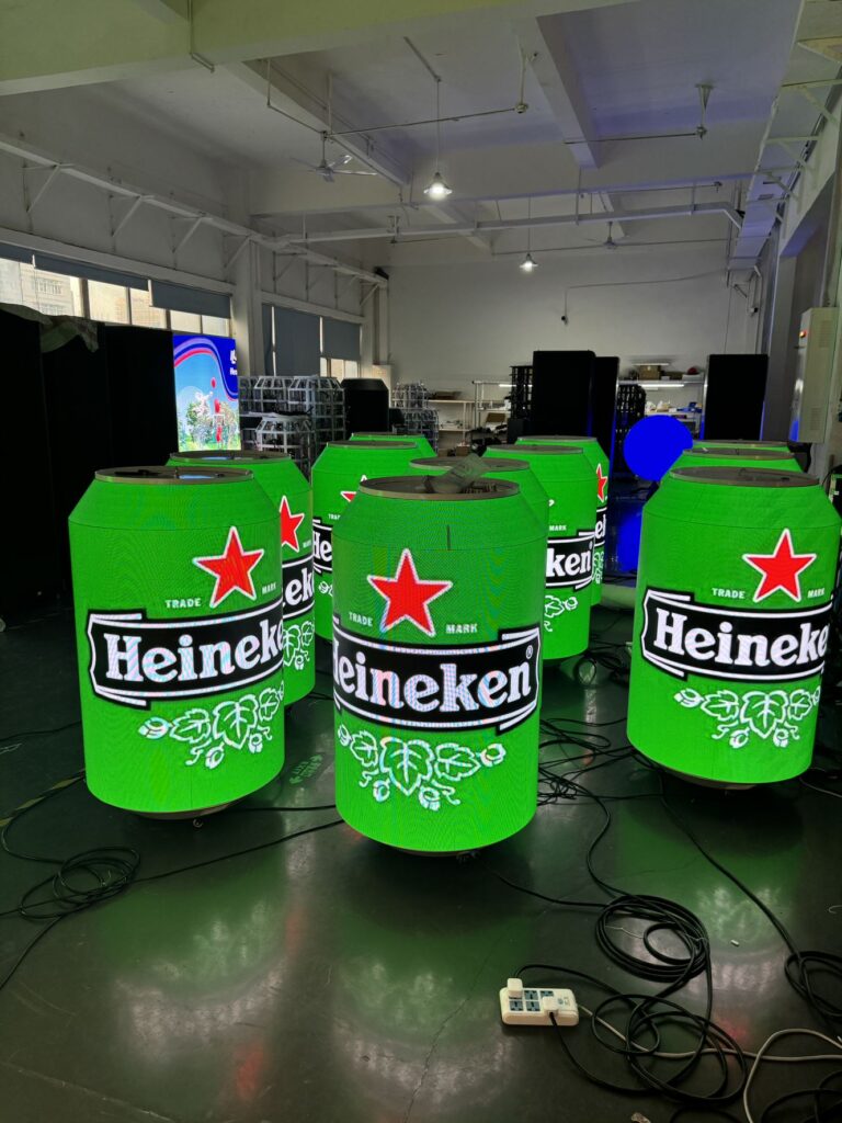 The LED can screen is a very creative LED display. It truly restores the shape of a beer can bottle in a one-to-one ratio .The text or video content can be changed at will to make it seamlessly connected with the LED display, helping to shape the brand store’s image, breaking the traditional store impression and enhancing brand value.