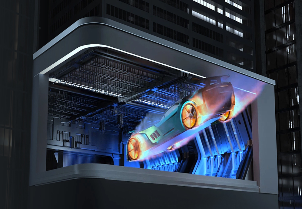 Η υλοποίηση του εφέ LED 3D γυμνού οφθαλμού σε εξωτερικούς χώρους απαιτεί μόνο τη χρήση LED γωνίας 90° σε συνδυασμό με LEDFUL 3D βιντεογραφικό υλικό.
