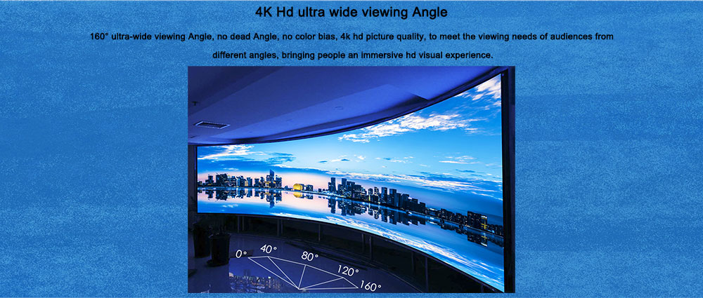 Γωνία θέασης 160° ultra-wide, χωρίς νεκρές γωνίες, χωρίς χρωματικές αλλοιώσεις. Η ανάλυση 4K HD προσφέρει εξαιρετική ποιότητα εικόνας, καλύπτοντας τις ανάγκες του κοινού από διαφορετικές γωνίες, προσφέροντας στους ανθρώπους μια καθηλωτική εμπειρία υψηλής ανάλυσης.