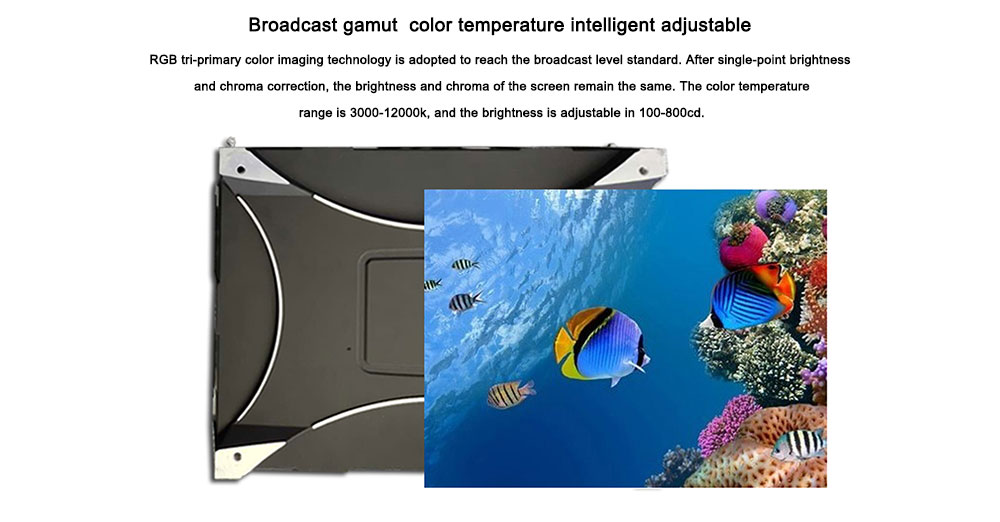 Η τεχνολογία τριτογενών RGB χρωμάτων εφαρμόζεται για να επιτευχθεί το πρότυπο επιπέδου εκπομπής. Μετά τη διόρθωση της φωτεινότητας και της χρωματικής απόχρωσης σε ένα μόνο σημείο, η φωτεινότητα και η χρωματική απόδοση της οθόνης παραμένουν σταθερές.